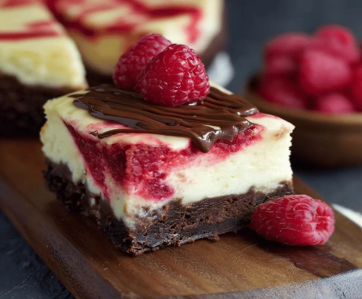 This Raspberry Brownie Cheesecake is a delicious treat with a rich brownie base and creamy cheesecake layer. The tart raspberries add a pop of flavor you’ll adore!