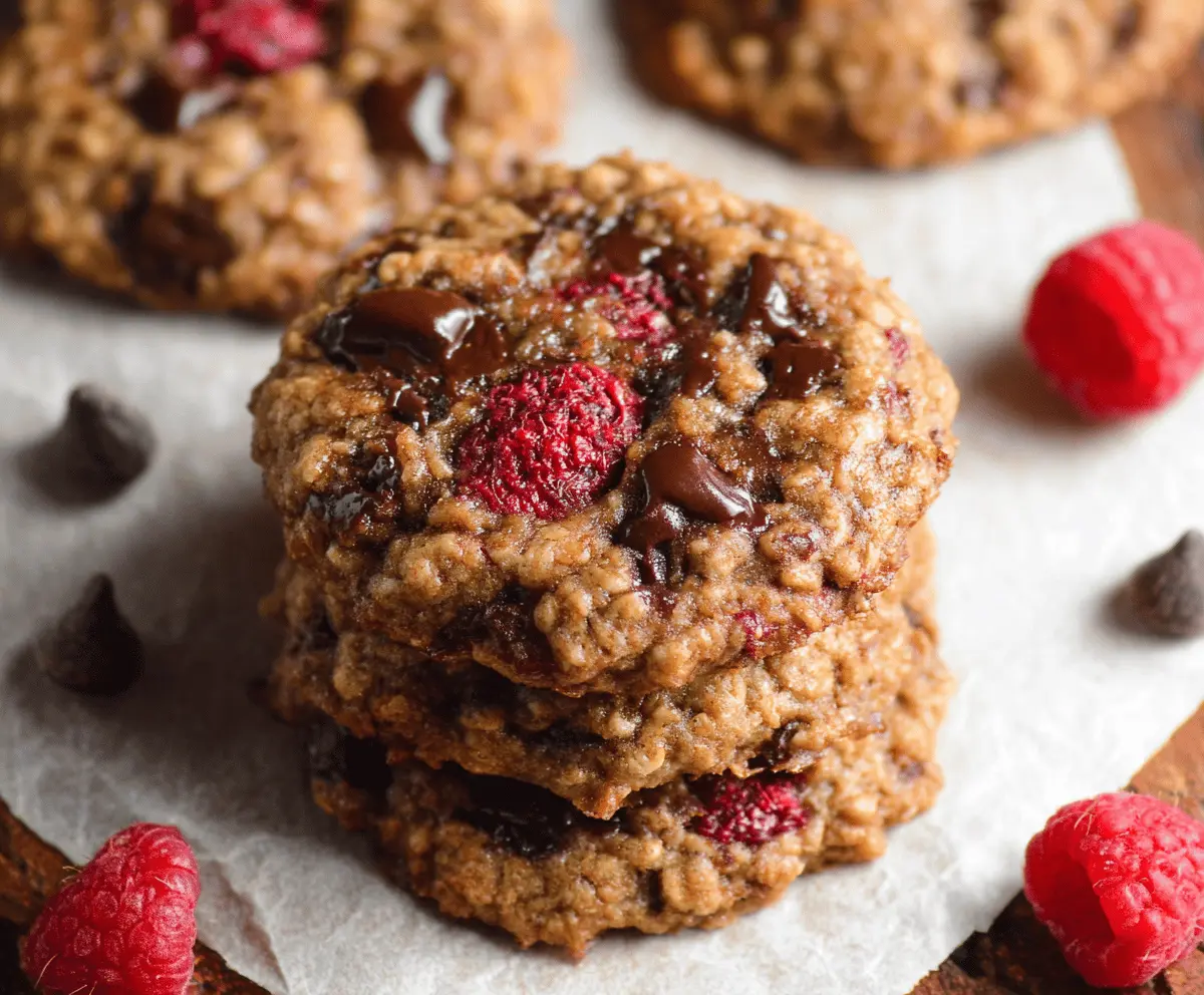 These raspberry chocolate oatmeal cookies are a sweet treat filled with juicy berries and rich chocolate. They have a lovely chewy texture that makes every bite delightful!