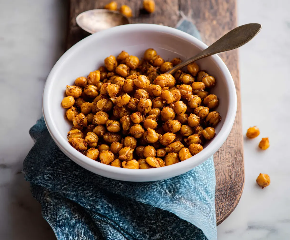 Roasted chickpeas are crunchy little snacks that are super easy to make! Just toss chickpeas with some olive oil and your favorite spices, then roast until golden.
