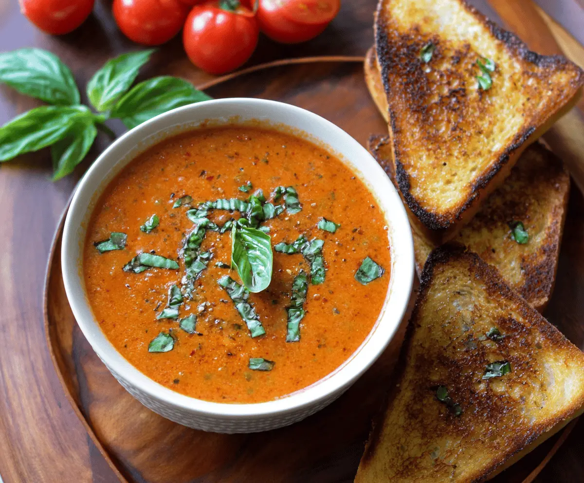 It’s time to enjoy your homemade soup! Taste and adjust the seasoning with additional salt and pepper if needed. Serve hot, garnished with fresh basil leaves. It pairs wonderfully with grilled cheese sandwiches or crusty bread for dipping. Enjoy every spoonful!