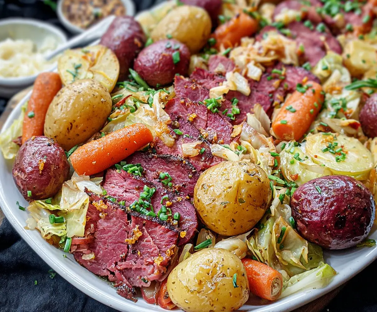 Finally, serve those delicious slices of corned beef alongside the roasted vegetables. Don’t forget to sprinkle some fresh parsley on top for a lovely touch! If you enjoy a bit of zing, have mustard or horseradish sauce ready on the side.