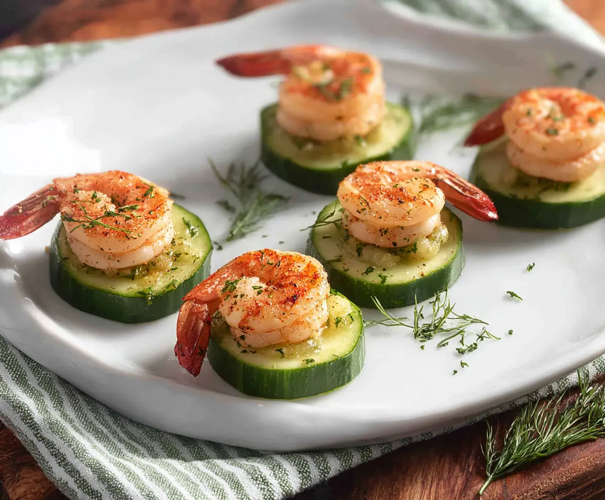 These Shrimp and Cucumber Bites are a fresh and tasty treat! Juicy shrimp sit on top of crunchy cucumber slices, giving you a fun mix of textures. Perfect for snacks or parties!