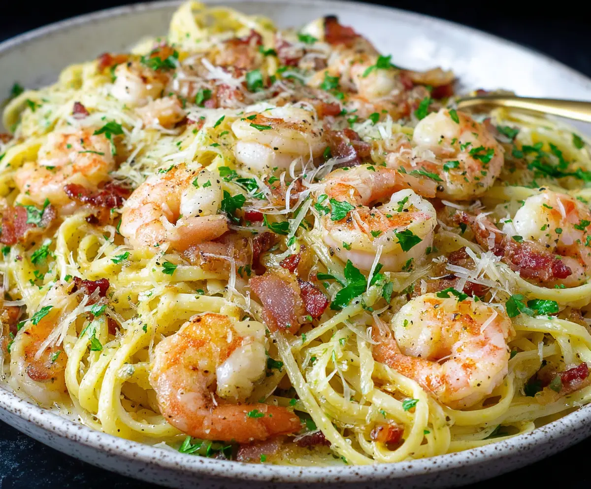 This Shrimp Pasta Carbonara is a creamy, dreamy dish that combines tender shrimp with perfectly cooked pasta. It’s quick to make, and you’ll love the rich flavors!