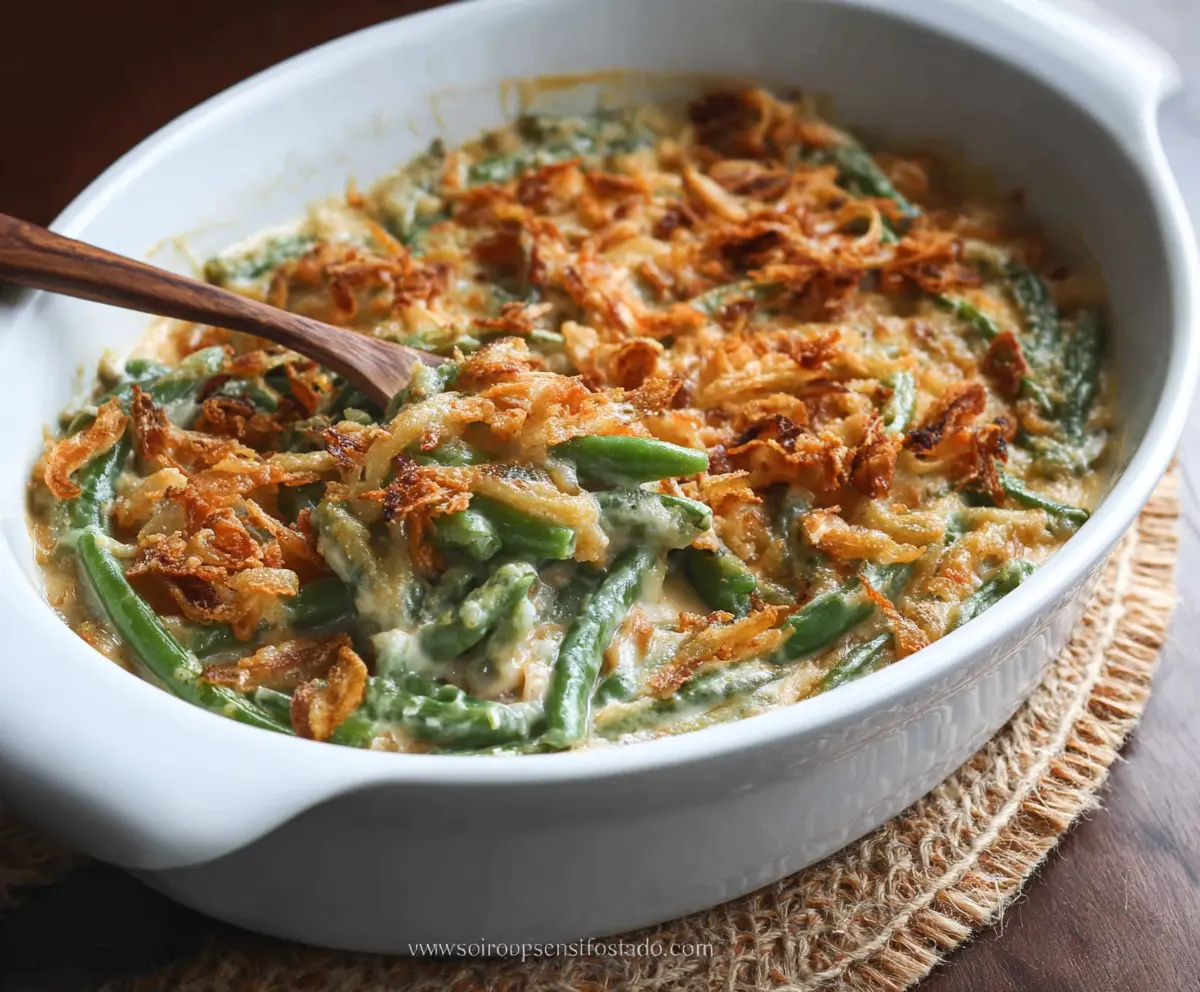 Enjoy this creamy, comforting green bean casserole as the perfect side dish for any meal!