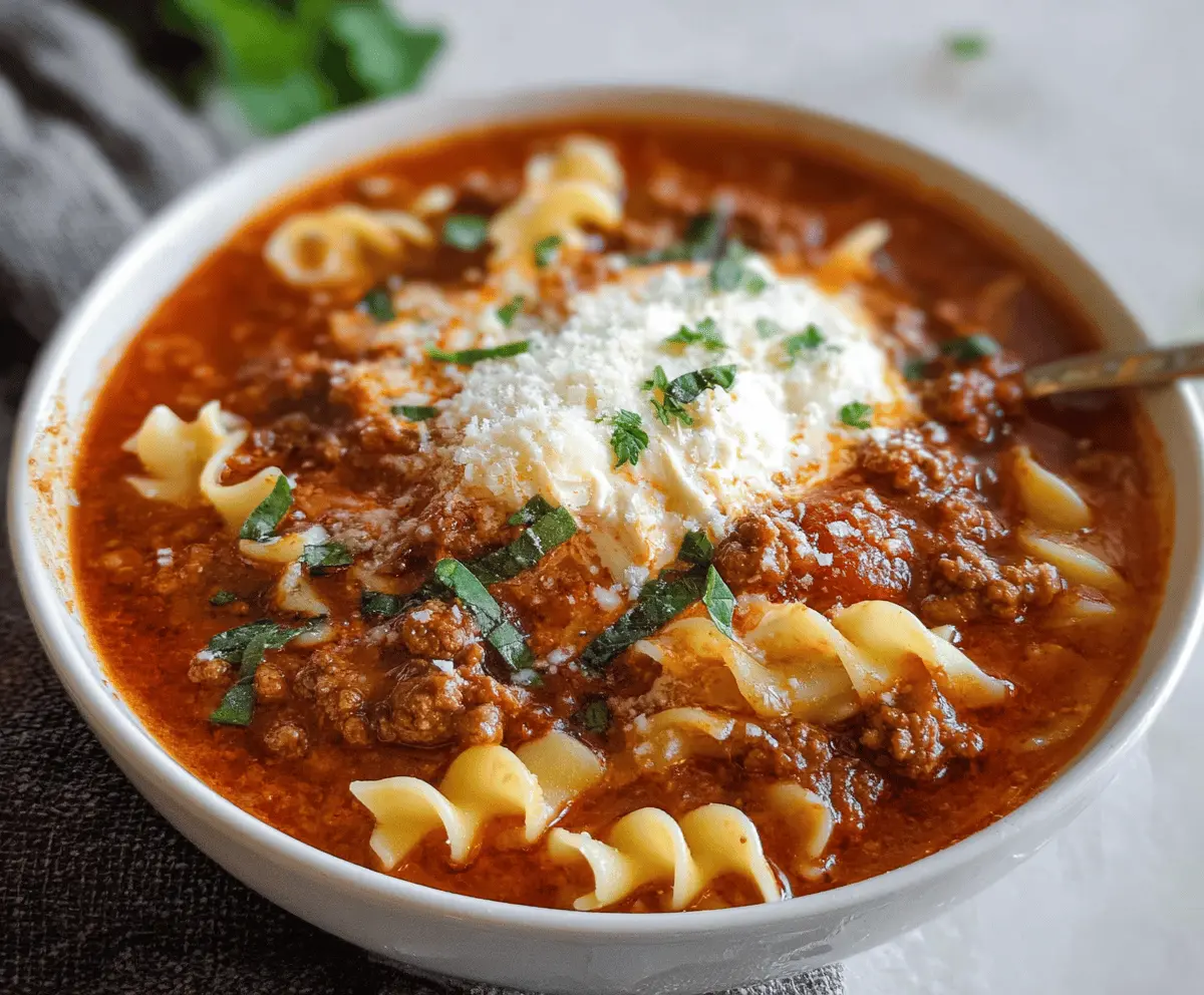 This Stovetop Ground Beef Lasagna Soup is a delightful mix of flavors and textures that captures everything you love about lasagna while being so easy to prepare!