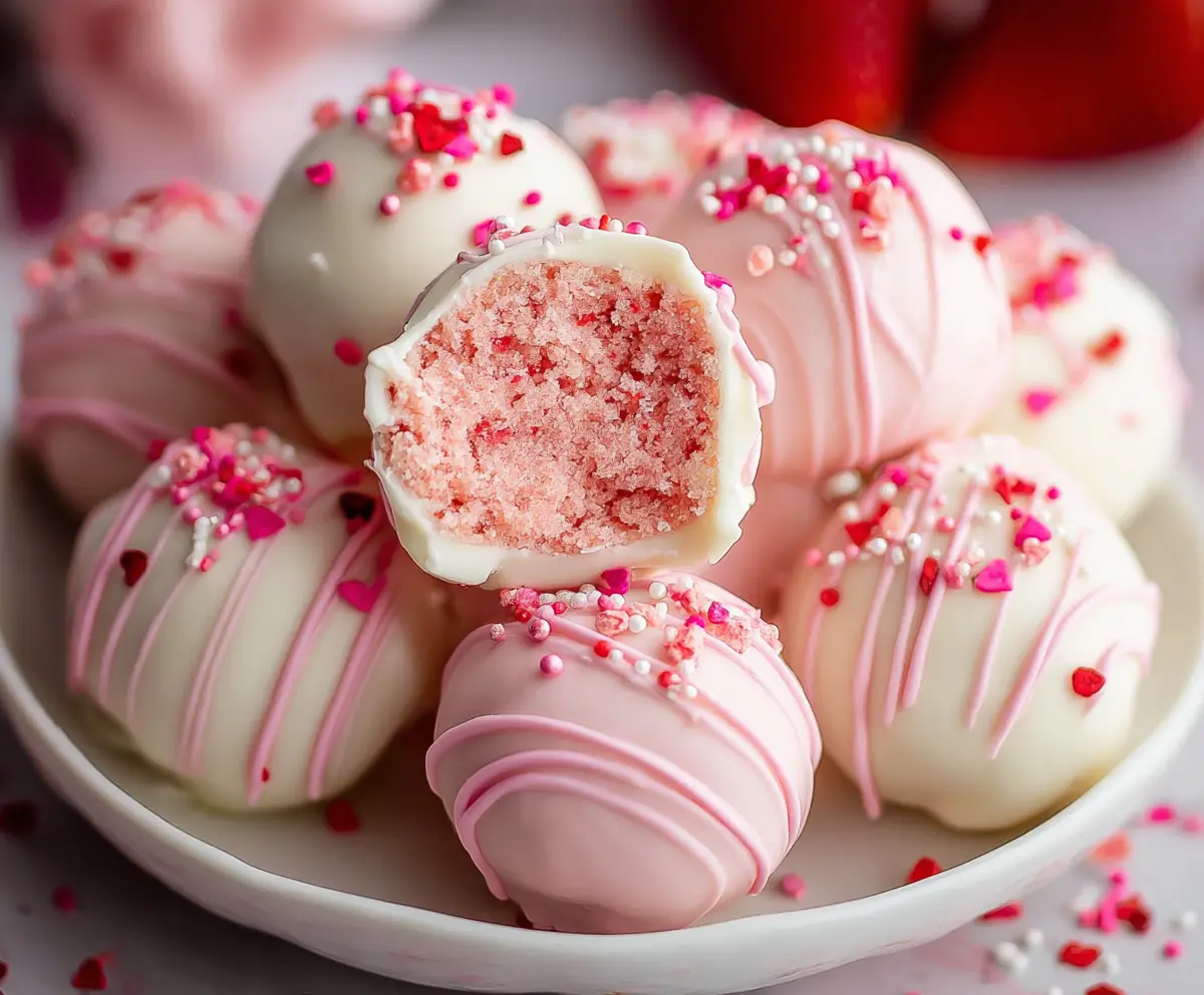 These strawberry cake balls are like tiny bites of sunshine! They’re made with moist strawberry cake, rolled into little balls, and dipped in creamy chocolate. Yum!