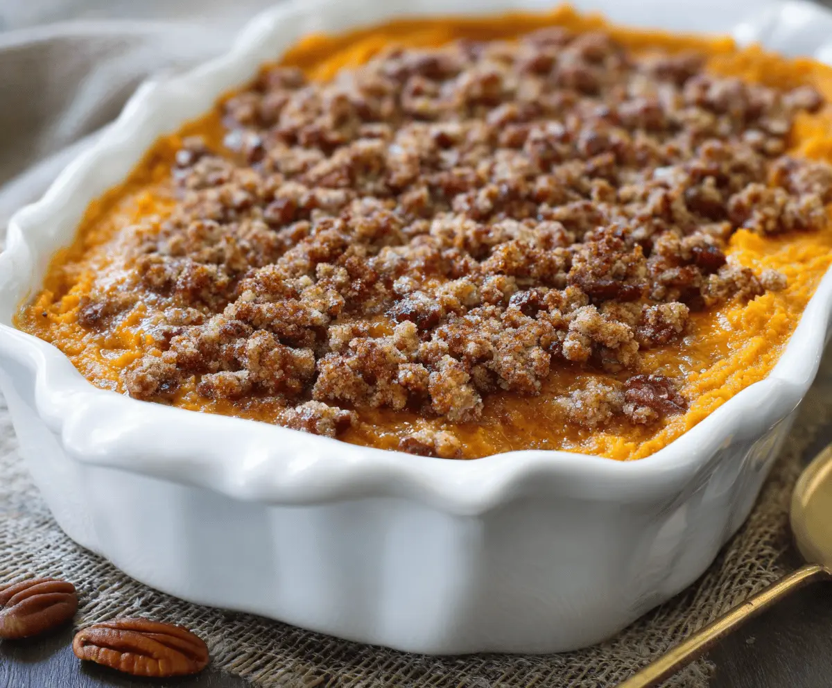 Once done, take the casserole out of the oven and let it cool slightly before serving. This Sweet Potato Casserole with Pecan Streusel is ready to be enjoyed—perfect for family gatherings, holiday dinners, or any cozy night at home!