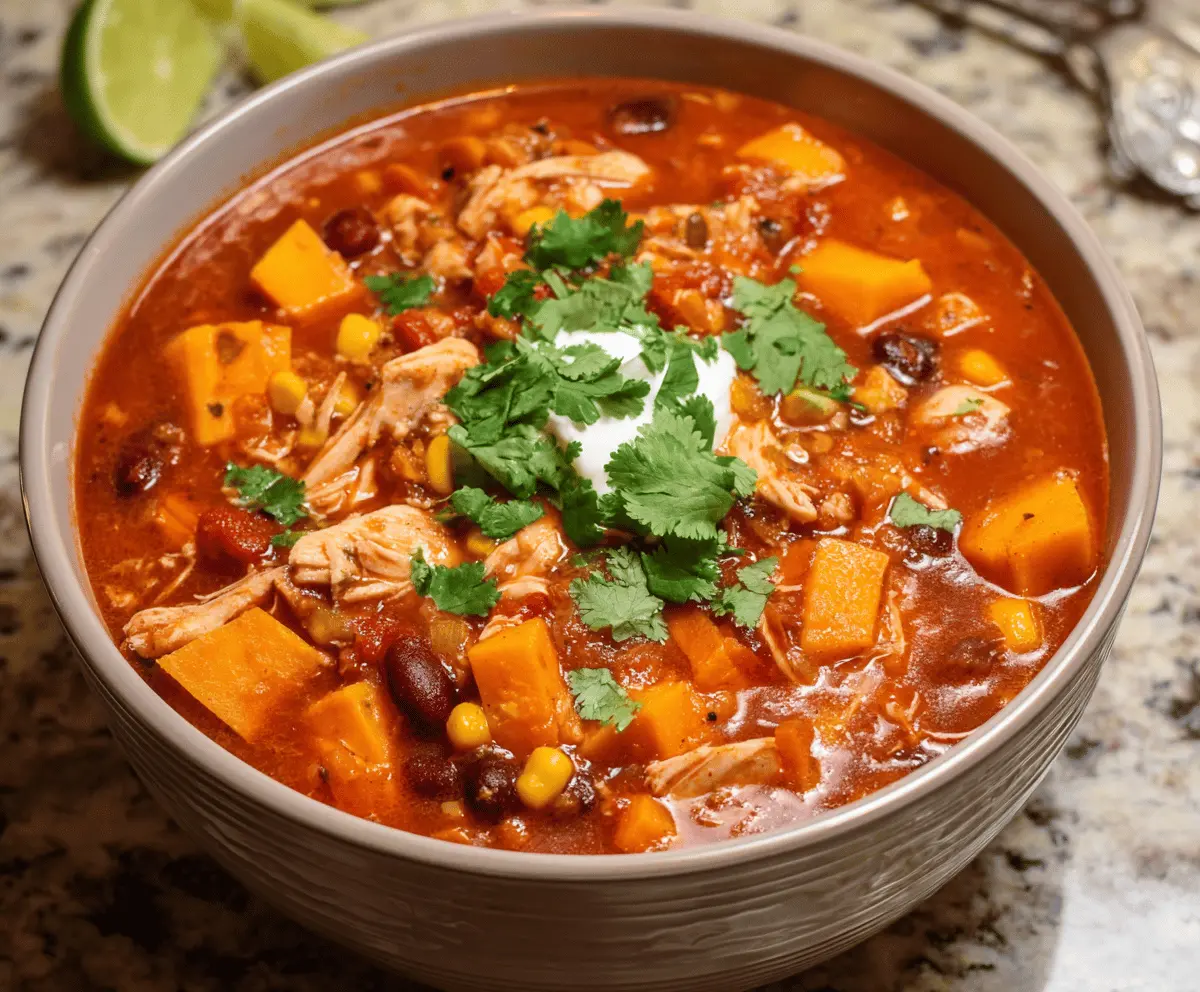 Sweet Potato Chicken Chili is a warm and hearty dish that combines tender chicken, sweet potatoes, and flavorful spices. It’s like a cozy hug in a bowl!