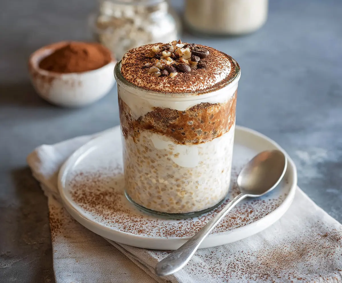 Serve your Tiramisu Overnight Oats chilled and enjoy the delightful mix of creamy, coffee-infused oats that resonate with the flavors of classic tiramisu. Perfect for a busy yet indulgent morning!