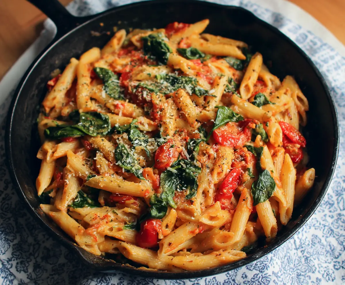 This Tomato Spinach Pasta is a colorful and tasty dish! With fresh tomatoes, bright green spinach, and pasta, it’s a simple meal that feels special.