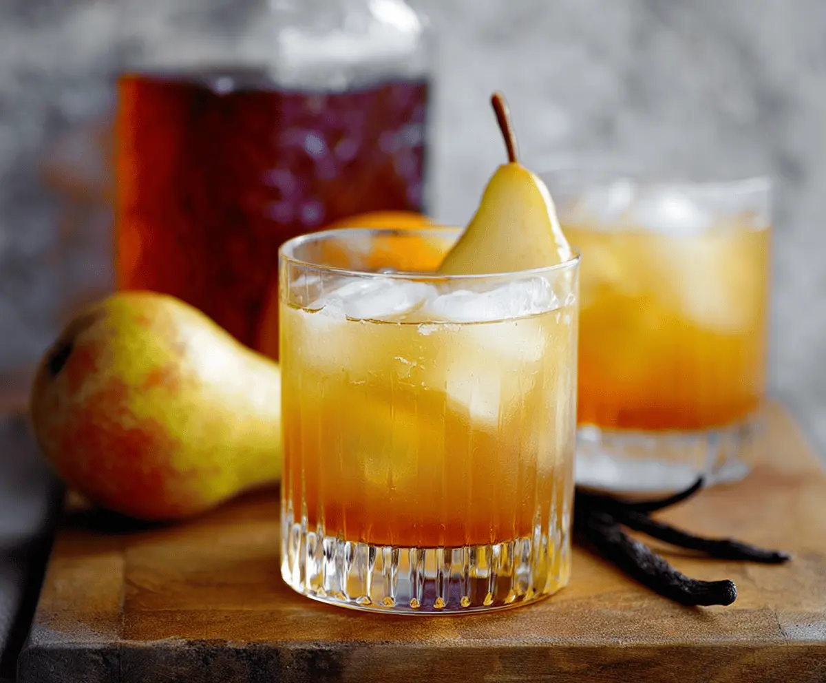 Your Vanilla Pear Bourbon Cocktail is ready! Sip and enjoy the delightful combination of smooth vanilla, sweet pear, rich bourbon, and a hint of zesty lemon. It’s perfect for a cozy evening or to impress your friends at a gathering. Cheers!