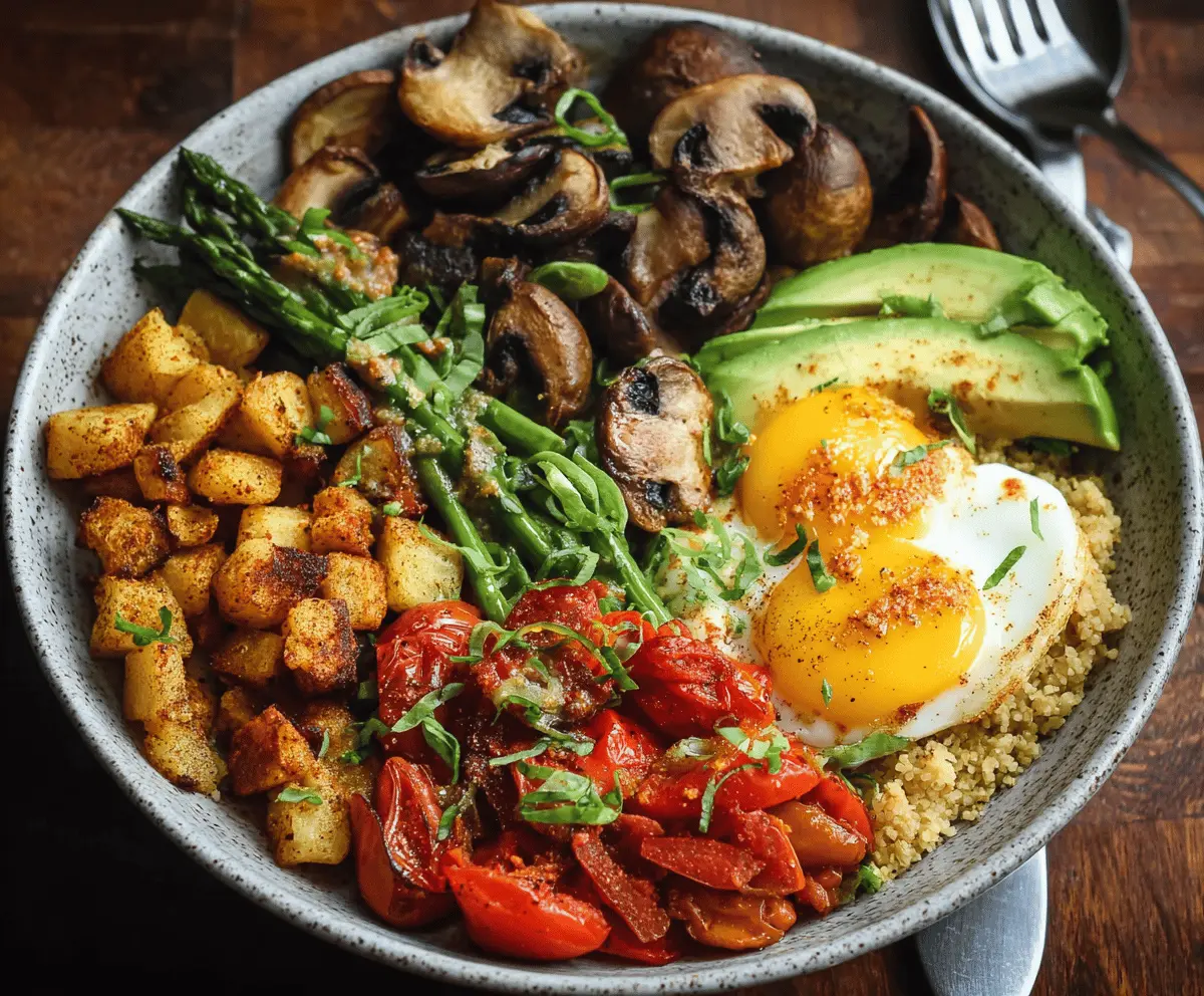Dig right in and enjoy this balanced, nutritious, and colorful breakfast bowl packed with yummy veggies. It’s both filling and satisfying—perfect for starting your day off right!