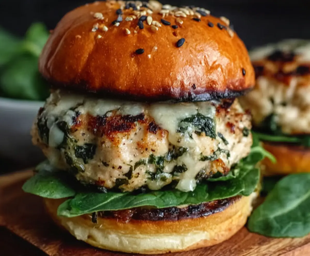 Enjoy your juicy and flavorful White Cheddar Spinach Chicken Burgers!
